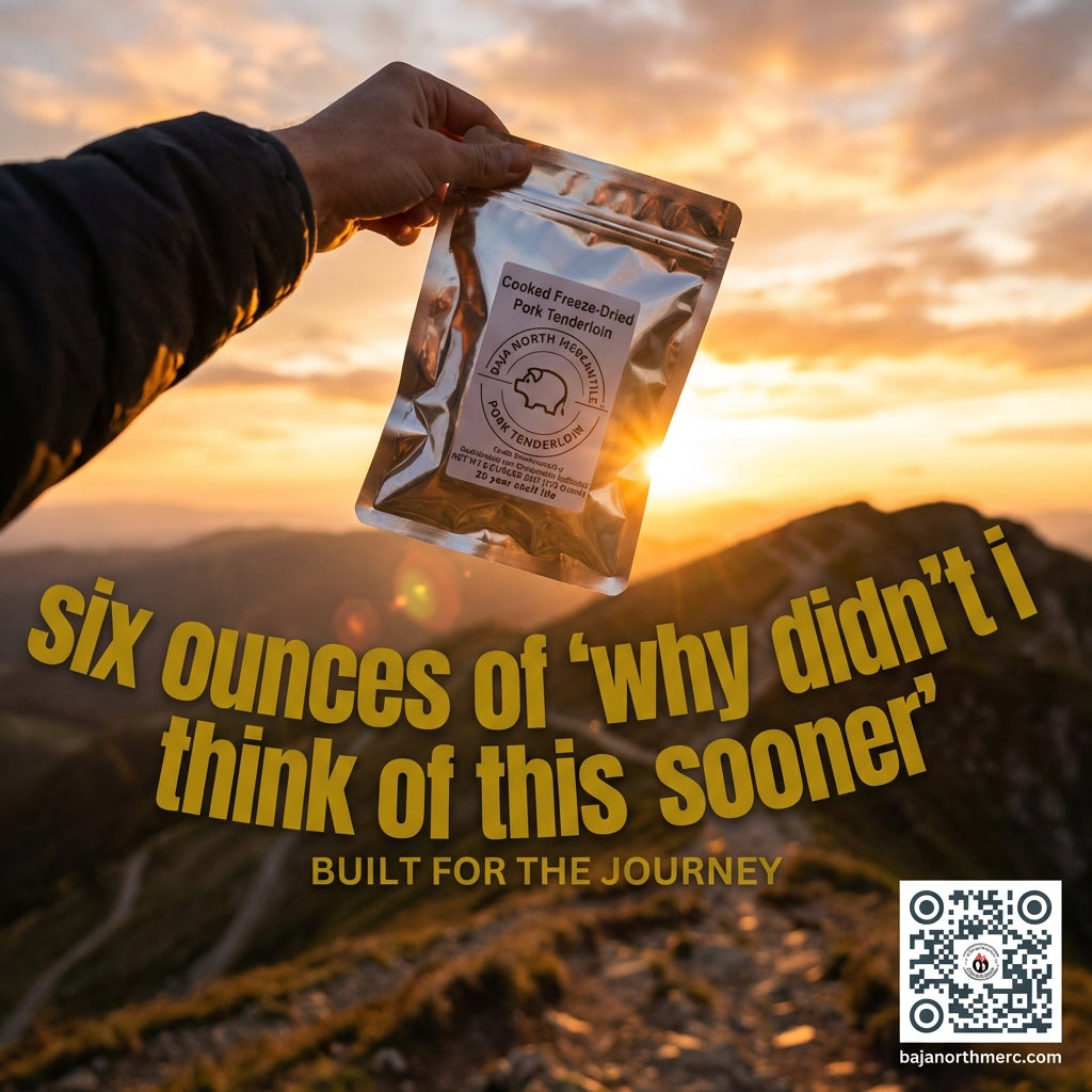 Cooked Freeze-Dried Pulled Pork Tenderloin 6oz makes 1.8 lbs hydrated. Designed for Backpackers, Campers, Survivalist, Hunters and Emergency Preparedness. MADE IN USA